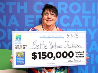 RALEIGH – Bettie Yarboro-Jackson, who owns the Southern Treasures Consignments and Antiques store in Roxboro, is celebrating after winning two lottery prizes over the past three days, including $150,000 in the new $500 Mayhem game.
