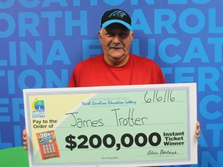 Trotter claimed his prize Monday at lottery headquarters in Raleigh. After federal and state tax withholdings, he received $138,501. Trotter says he plans to use some of the money to pay bills.