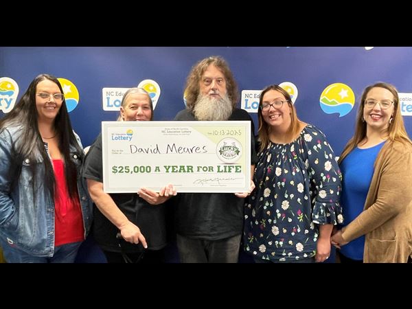 David Meares of Columbus County immediately thought of his family after his $2 Lucky for Life ticket won him a $25,000 a year for life prize.