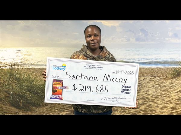 Santana McCoy of Engelhard sat at home Saturday playing digital instants when out of the blue she landed a $219,685 jackpot.