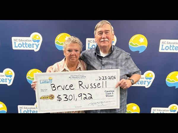 He claimed the prize Monday at lottery headquarters in Raleigh. After required federal and state tax withholdings, Russell took home $217,414.